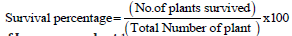 It was recorded by counting the total number of survival plants in each treatment divided by total number of plants transplanted multiplied by 100, as follow,