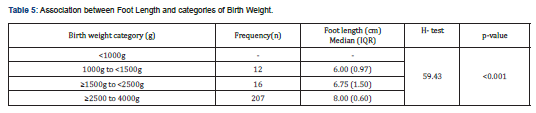 - Gowri S, Kumar V (2017) Clinical study of the correlation of foot length and birth weight among newborns in a tertiary care hospital. Int J Contemp Pediatr 4(3): 979.