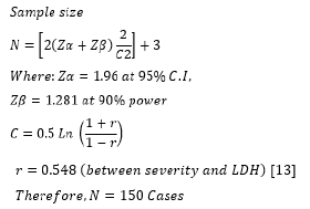 The Table 6 shows the correlation between LDH and the severity of COVID-19 analysed by Mann-Whitney test. The P-value < 0.001 in LDH was found to be statistically significant for mild, moderate and severe cases. In this study, the serum biochemical markers show a significant correlation with severity of COVID-19 patients.