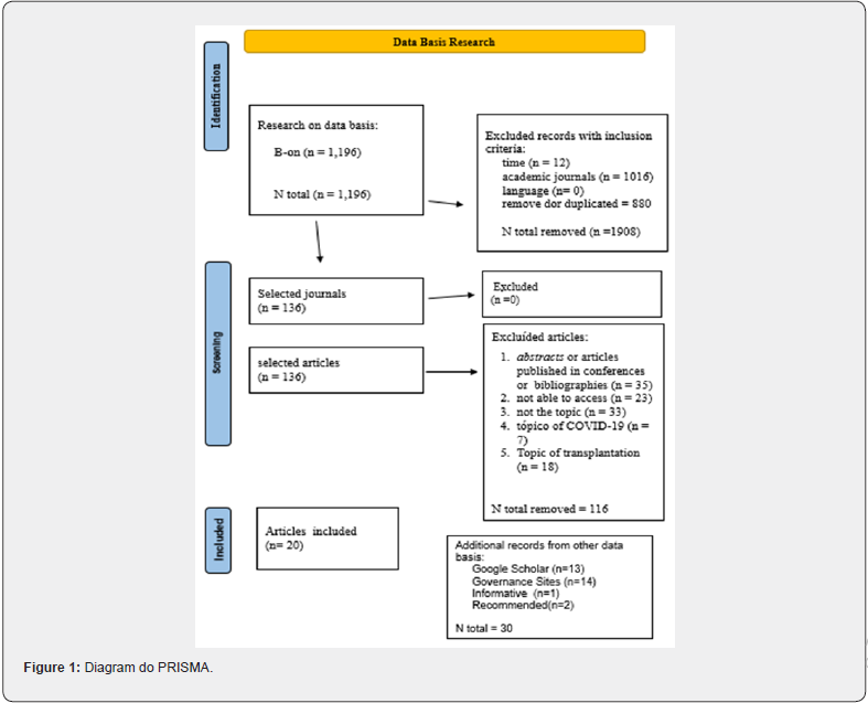 To carry out this literature review, we used the principles of the Preferred Reporting Items for Systematic Reviews and Meta- Analyses (PRISMA) principles to research the existing literature on Leukemia between 2003 and 2023. The main objective was to research scientific articles on Leukemia, its impacts, and potential interventions, with a greater focus on the pediatric population. The search was then done using the B-on, PubMed, Google, Google Scholar, ScienceDirect, and Springer databases. The research carried out at B-On had the following research protocol: (“Leukemia” AND “blood cancer”) AND (Symptoms AND treatment AND diagnosis AND “psychology* effects”) AND (children OR youth OR adults) AND (“family* impact” OR wellbeing). The Boolean Operators “AND” were used to ensure that the four topics were included in the search and “OR” to increase the chances of obtaining more results within the same topics. About truncators, the symbol “*” was used to guarantee the inclusion of words with the exact origin, and the “symbol was used to guarantee that the concepts of two words were searched together and not separately. The investigation was carried out between September and December 2023. Initially, the search result was 1,196 articles (Figure 1). The inclusion criteria were scientific articles related to Leukemia and its impacts and websites of relevant organizations on the topic, written in English and Portuguese and with free access. The exclusion criteria were scientific articles published before 2003, with paid access, Abstracts or articles published in conferences, articles that did not address the topic and articles that talked explicitly about stem cell transplants. After careful selection, 20 articles were included for analysis, and 116 were excluded. Thirty additional articles and organization websites were used to supplement the research.