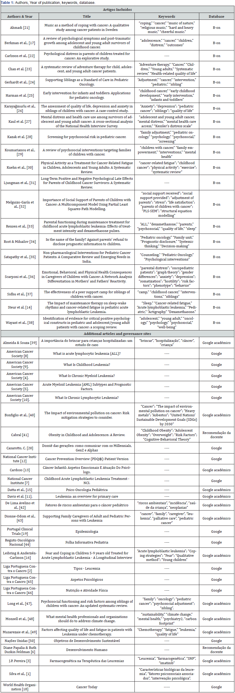 The psychologist has a central role in the area of Psycho- Oncology, particularly in understanding the disease in light of the biopsychosocial model, i.e., not only focusing on the cancer patient but on all aspects around them, with the primary objective being to provide a better quality of life to the patient, through a psychosocial approach [13,56-59]. It is recommended that more studies should be promoted that focus on this topic related to the pediatric population and the impacts on their families, integrating a more holistic approach taking into account physical and mental health.
