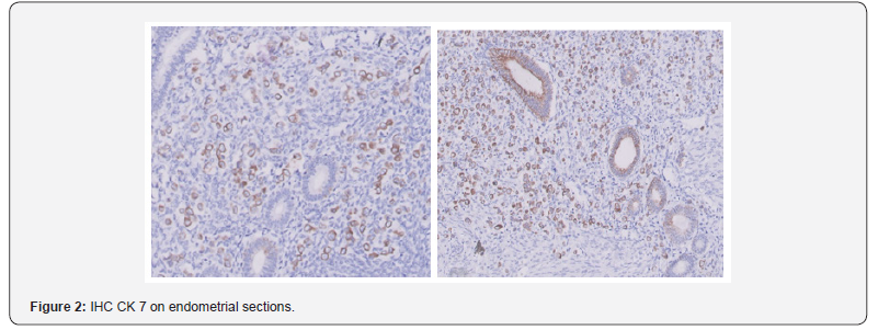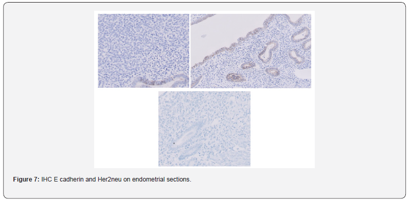 The female genital tract is not frequently involved by metastatic tumors. When it is, the ovaries are most often affected [1,2]. Tumors that secondarily involve the uterus usually do so by direct extension from adjacent pelvic organs or as a result of widespread peritoneal implants from ovarian carcinomas. Embolic metastases to the uterine corpus are distinctly unusual, especially from cancers originating in extragenital sites [3]. Abnormal/ Dsyfunctional uterine bleeding is the most classical initial manifestation of primary and/or secondary endometrial neoplasia. Breast cancer is the most common extra-gynecologic secondary source of endometrial neoplasia by being the main primary site that metastasizes to the uterus, especially lobular type [4,5]. Invasive lobular carcinoma (ILC), also known as infiltrative lobular carcinoma, is the second most common invasive breast cancer, after invasive ductal carcinoma (IDC).