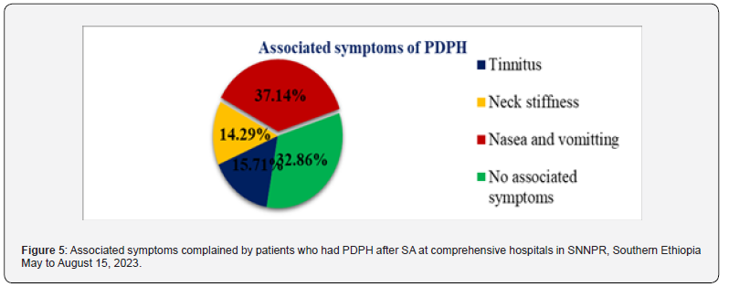On 67.94% of patients with PDPH nausea and vomiting, neck stiffness, or tinnitus was observed (Figure 5).