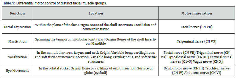 Facial expressions are crucial to social interactions [1]. Unfortunately, how they are managed to direct the coordinated muscle movements required to produce facial expressions has not been fully elucidated [2,3]. However, facial expressions are thought to consist of electrical activity carried by the cerebral cortex and sensorimotor pathways. It is necessary to generate new hypotheses about why facial expressions are atypical in various clinical populations. The sensorimotor mechanisms supporting facial expressions consist of neural pathways that regulate the motor control of facial sensation at the cortical, subcortical, and brainstem levels. Motor control of the muscles of facial expression involves the facial nerve (cranial nerve VII), while mechanosensory and proprioceptive feedback from these muscles involves the trigeminal nerve (cranial nerve V). The division of motor control and sensation between two separate systems differs from other skeletal muscles, where motor and sensory fibers are typically part of the same nerve [4].