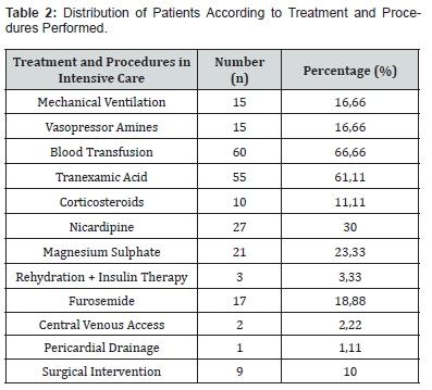 interventions were blood transfusion (66.66%), antihypertensive treatment with nicardipine (30%) and magnesium sulphate (23.33%), and