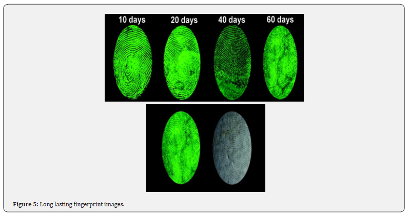 Addressing this limitation, researchers at Wuhan University developed a new approach. They synthesized Ternary oxide (Zn2GeO4) nanorods doped with Gallium (Ga) and Manganese (Mn), similar to materials used in medical imaging. These nanorods displayed persistent luminescence, glowing even after the UV light source is turned off. The researchers modified the nanoparticle surface to bind with amino acids present in fingerprints. They then tested the technique on a card and a tin can with fingerprints. After applying the nanoparticle solution, rinsing, and exposing the samples to UV light, only the green glow from the nanoparticles remained, revealing fingerprint details like ridges, whorls, and other patterns. Compared to traditional black powder, this method revealed significantly clearer ridge details. Additionally, it successfully detected fingerprints left 60 days prior, a challenge for conventional techniques due to fingerprint decomposition over time. While promising, widespread adoption of this method might face hurdles. Dr. S.S. Anthony, an expert in analytical chemistry, acknowledges the potential for overcoming challenges like background interference and detecting prints on complex surfaces. However, he highlights the difficulty of introducing new protocols into established forensic labs. Nonetheless, researchers remain optimistic, with a forensic institute in Beijing already expressing interest in exploring the potential of this new fingerprint detection tool (Figure 5).