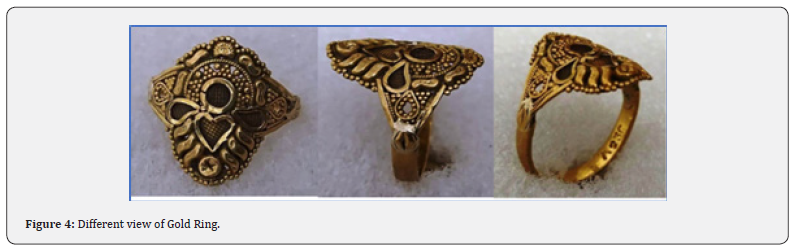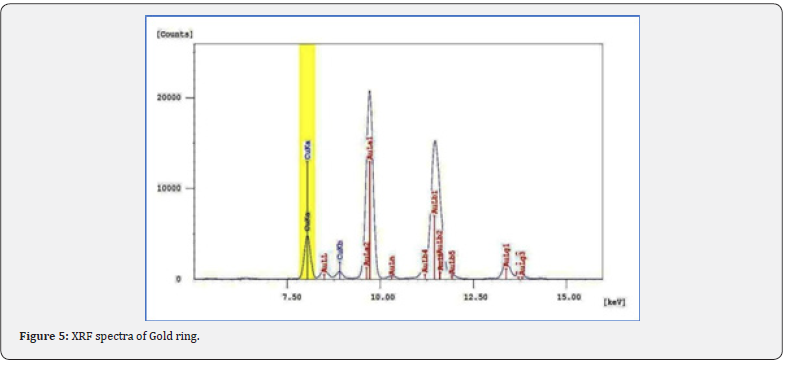 The gold ring of 22 carat as shown in Figure 4 is used as sample whose elemental concentration has been find out here. The acquisition time for each sample analysis was ~100 seconds.